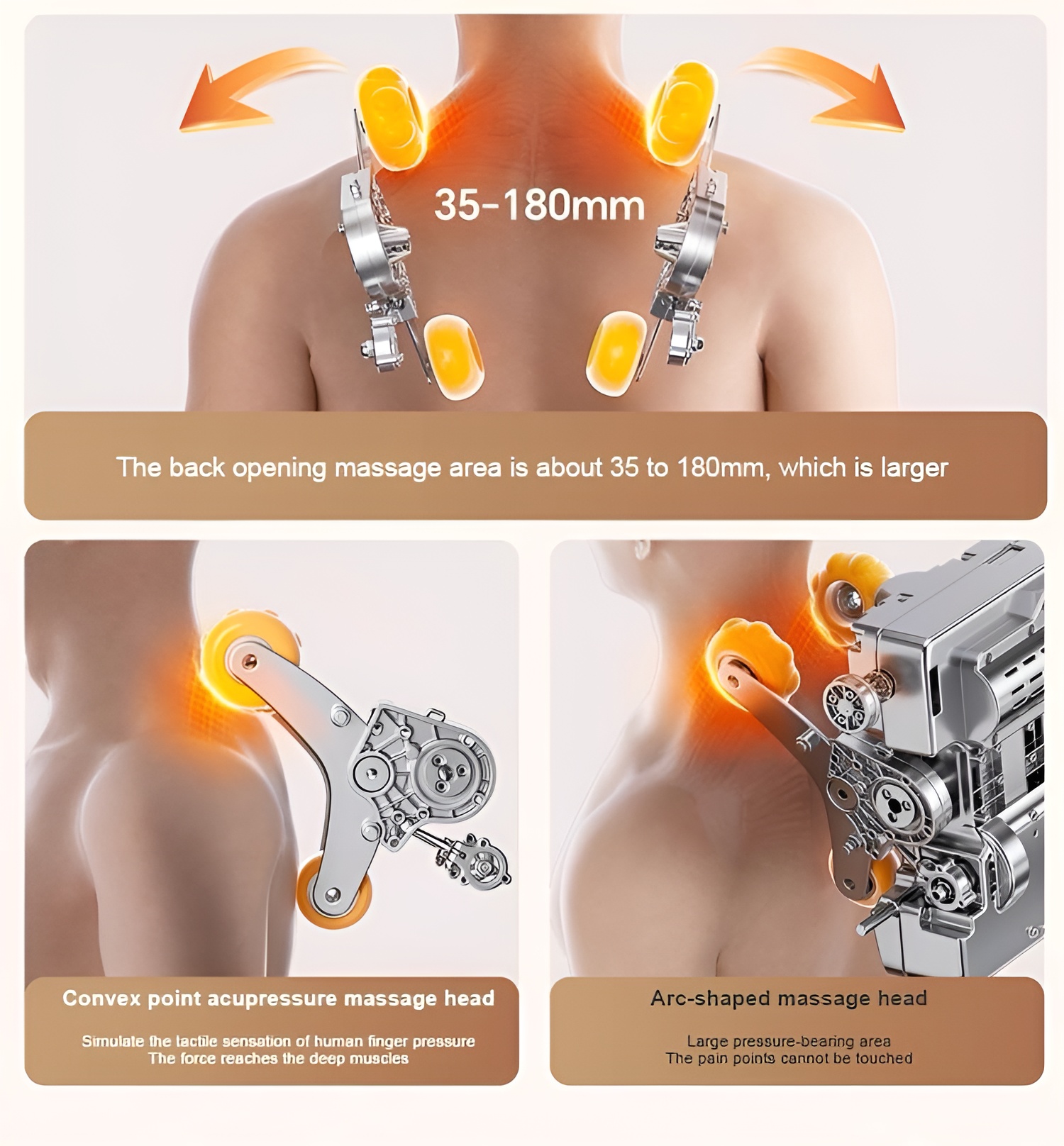 يُحاكي التصميم حركة العجن اليدوي وضغط الأصابع، بالإضافة إلى قضيب SL الممتد الذي يتبع العمود الفقري بدقة لتوفير تدليك انسيابي. ويركز على تخفيف آلام الكتفين والرقبة وأسفل الظهر، مما يُساعد على التخلص من الإرهاق تدريجيًا.